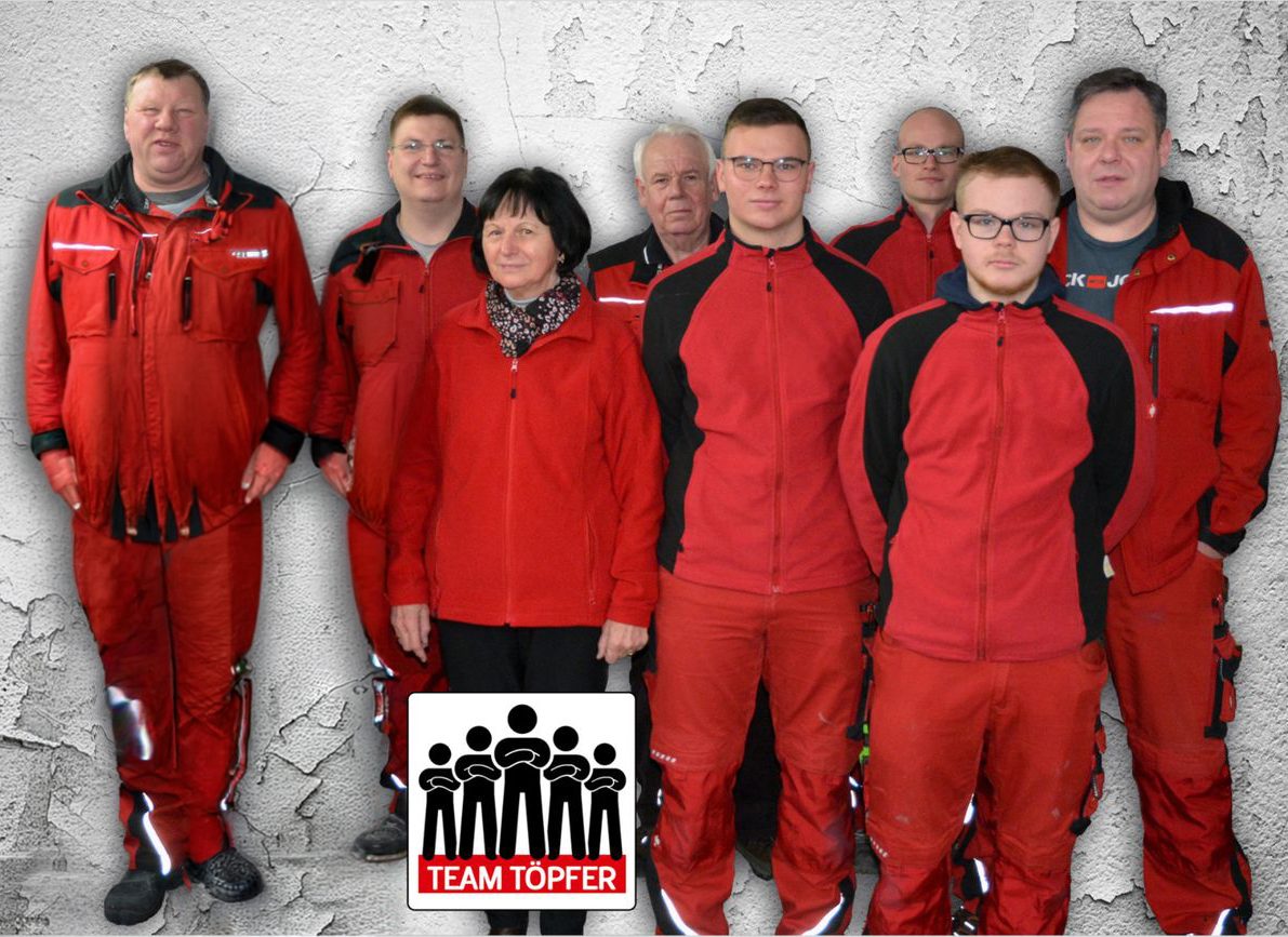 Zum Bestehen auf dem Markt gehören nicht nur eine transparente Firmenpolitik und ein angemessenes Arbeitsumfeld. Nein, es sind allein meine Mitarbeiter, die seit Jahren für die Firma Töpfer pünktlich zum Arbeitsbeginn antreten. Mitarbeiter, die täglich engagiert bei meinen Kunden beste Arbeit leisten. Meine Mitarbeiter sind die, die etwas im Unternehmen bewegen. Männer und Frauen, auf die ich seit mehr als 25 Jahren zählen kann. All meinen Mitarbeitern ein herzliches Dankeschön.